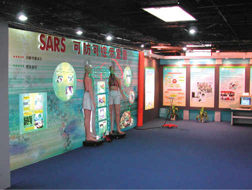 通過對形體語言的運用,充分表達出展覽鮮明的主體性,體現出科技的力量和戰勝SARS的決心